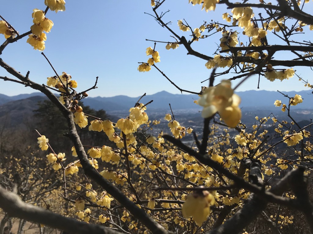 中国での仕事を終え日本に帰ってきた。私の中に中国の思い出は”香り”として残っていた。香りを大切にしたい。先ず、香りのある花木を求め日本の野山、公園を歩いた。そして庭に植えていくことにした。梅、金木犀は元より庭の木。クスノキはまず無理であったが、沈丁花から花海棠、梔子を植えた。ロウバイは何処に。答えは秩父宝登山にあった。みごと!秩父鉄道長瀞駅から直接登れる標高497mの山。 山頂一帯、約15,000平方メートル、3,000本のロウバイの花が咲き乱れる。ロープウェイの駅前で売っていた苗木を買った。もう8年前。毎年大きくなり見事な花を咲かせるようになった。裏切らない花。宝登山には東京に拠点を構えている時はほぼ毎年登っている。これからも健康でいる限り毎春登り続けるであろう。そのくらい魅力ある山である。登るのが簡単だからなのだが。頂上で見上げる空は何処までも青く、空気は清廉。遠く眺める秩父の山並みも美しい。眼下のロウバイはレモンイエローの花を青い空に映えさせ、芳しい香りを風に漂わせる。因みに宝登山のロウバイを植えたのは秩父鉄道の駅員と聞く。観光の目玉として山をロウバイで彩りたかったと聞く。いい話だ。