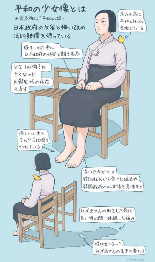 国際芸術祭「あいちトリエンナーレ2019」の「表現の不自由展・その後」が平和の少女像の展示が「反日的だ」との批判により三日で中止した。当に表現の不自由が日本にあることを十分に世界的にアピールした。ベルリンではこの少女像を撤去することを昨年否定された。この像の価値を認めているからだ。この少女像を直視できないのは心の何処かに疾しいものを感じるからではないか。余りにも無垢な顔をされているではないか。この少女像が問いかけるものは何なのか?胸に手を当てて聞く時がきたのではないか?世界的に見て国内外で反日を問う国も珍しいのではないか?この少女像は韓国において日本大使館の前に初めて設置されて以来10年、100体以上各地に設置され、日本以外中国、香港、台湾、米国、オーストラリア、ドイツ、カナダ、フィリピンでも会うことができる。韓国のみを”反日”的だと一概に言えるのだろうか?”反日”を越えたところに真実はある。