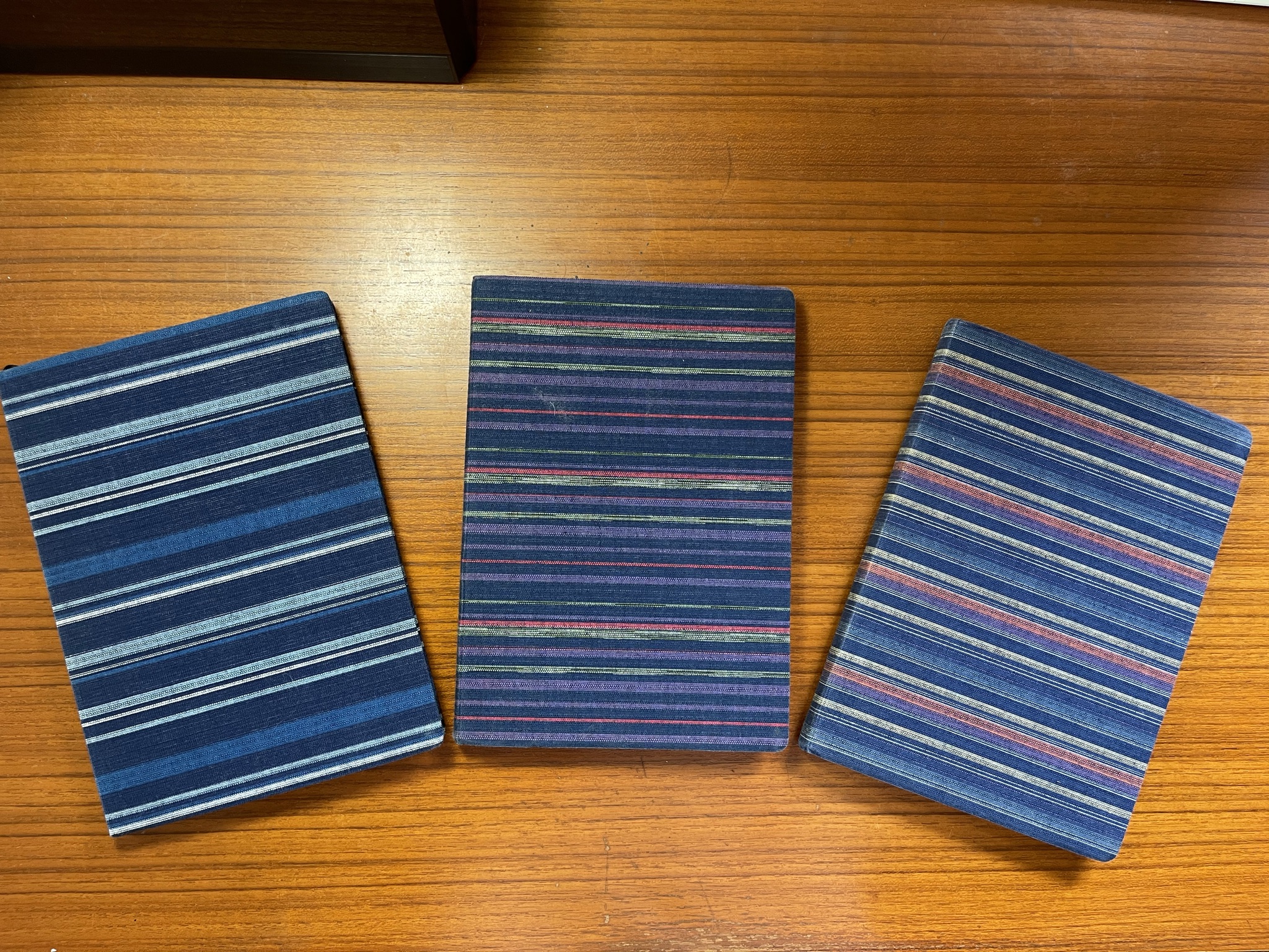 この日記帳は日本橋丸善に行った際、カバーの織布の藍色の美しさ、手に馴染む温かみに惚れて、少々高いが購入した。阿波しじら織り。独特の風合い。そしてノートの行間の広さ、書きやすさも良かった。この手帳の虜にすぐなった。あの頃は万年筆で書いており、ささっと書いていたので誤字脱字が多かった。尤も字を書くこと自体も忘れていた。パソコンでのキーボードや携帯での文字入力は漢字への自動変換機能があり、漢字の記憶が大まかになる。形状が浮かぶが詳細が出てこない。当たり前の漢字も書けなくなる。便利は便利なのだが。日記を付けることは漢字を思い出し、書くと言う作業を思い出すのに丁度良かった。