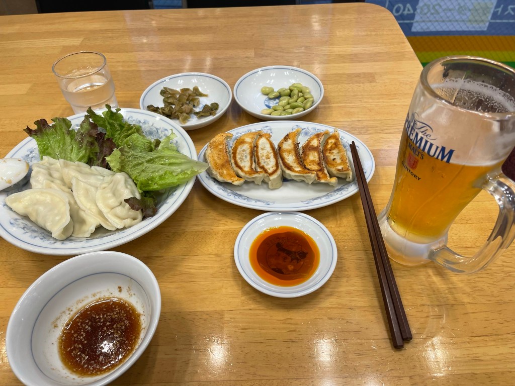 北方の中国では餃子は主食であり、ごはんと一緒に食べるものではない。日本人は何故餃子をおかずにご飯を食べるのかと中国人に聞かれたことがある。そう水餃子であればこれだけでお腹が膨れるのでご飯を必要としない。しかし焼くと主食から離れつまみとしてビールに合うし、ご飯にも合う。これは日本人の発明した食べ方であろう。また、中国では餃子を引っ繰り返すことはしない。あの形が重要なのだ。中国のお金の形なのだ。馬蹄銀(元宝)と呼ばれ、縁起物でもある。しかし、屋台の焼き餃子であれば、焼き面を上にするのは焼き具合を見るため必要となる。そもそもそこが違う。こだわりを忘れ、ぎょうざの満洲でビールと餃子、至極の時を過ごせることに日本人としての喜びを感じる。日本は中国から美味しい文化を取り寄せた。極東の文化の終着点でいいとこ取りができた。何と幸せなことか。