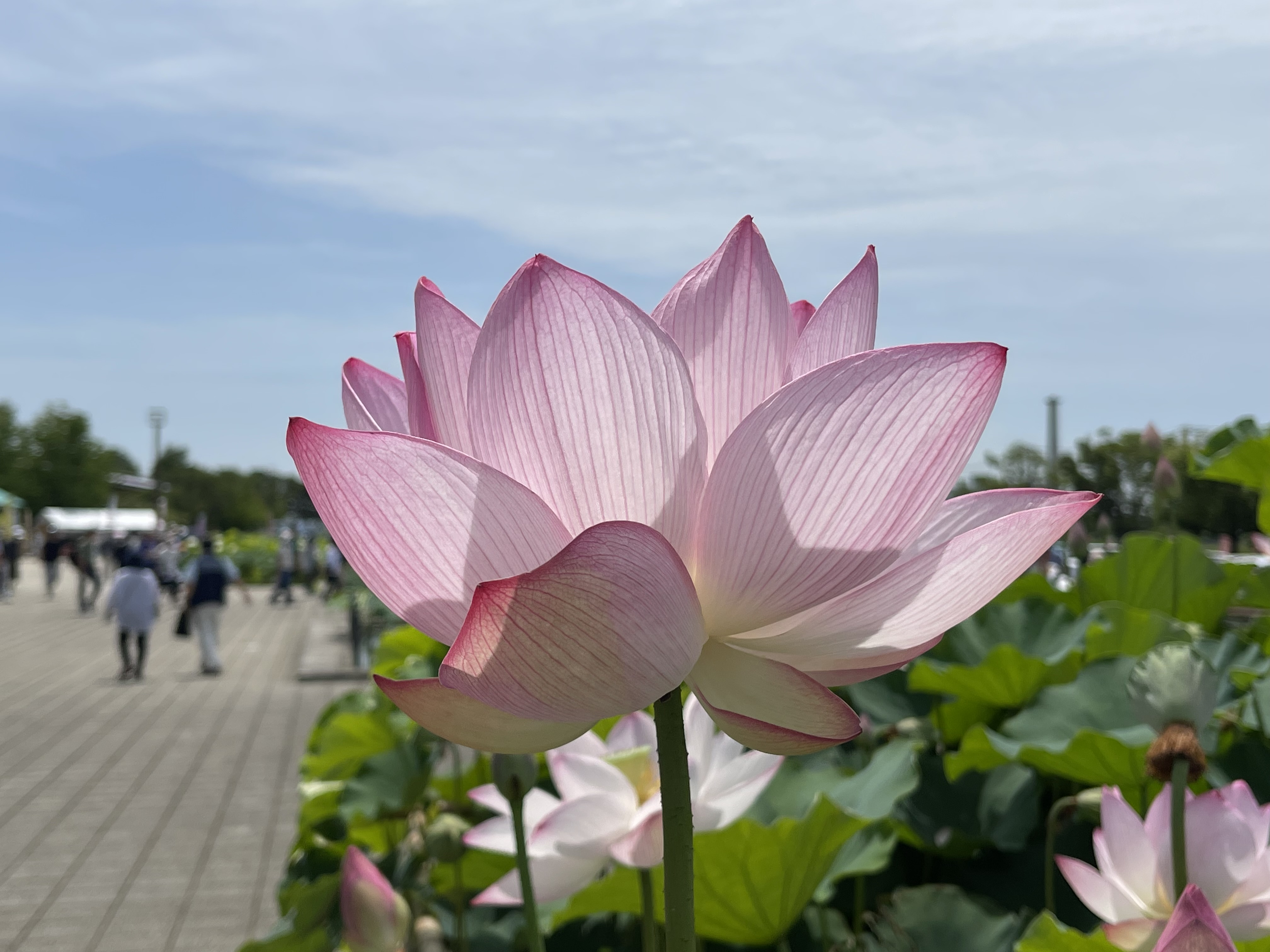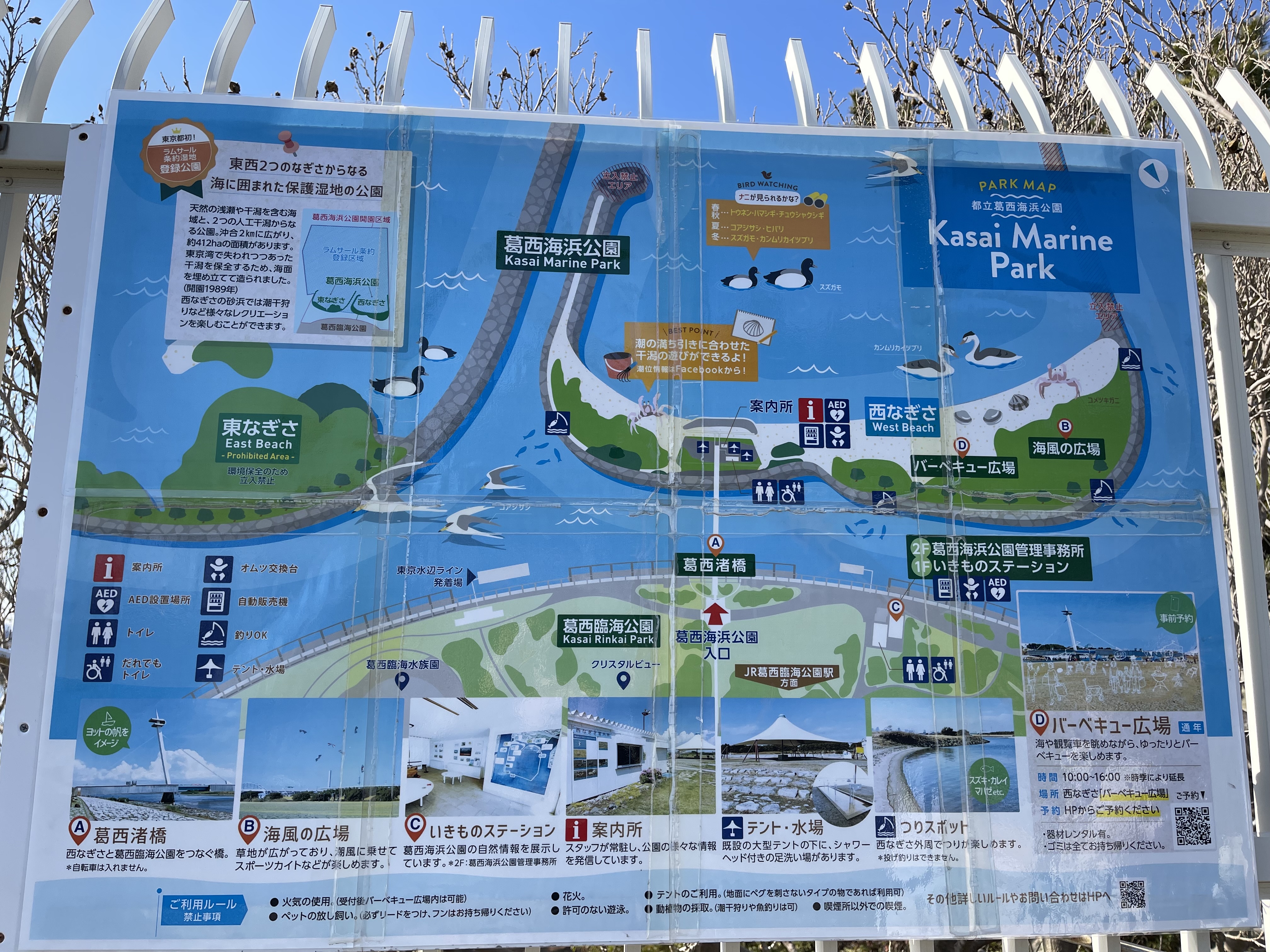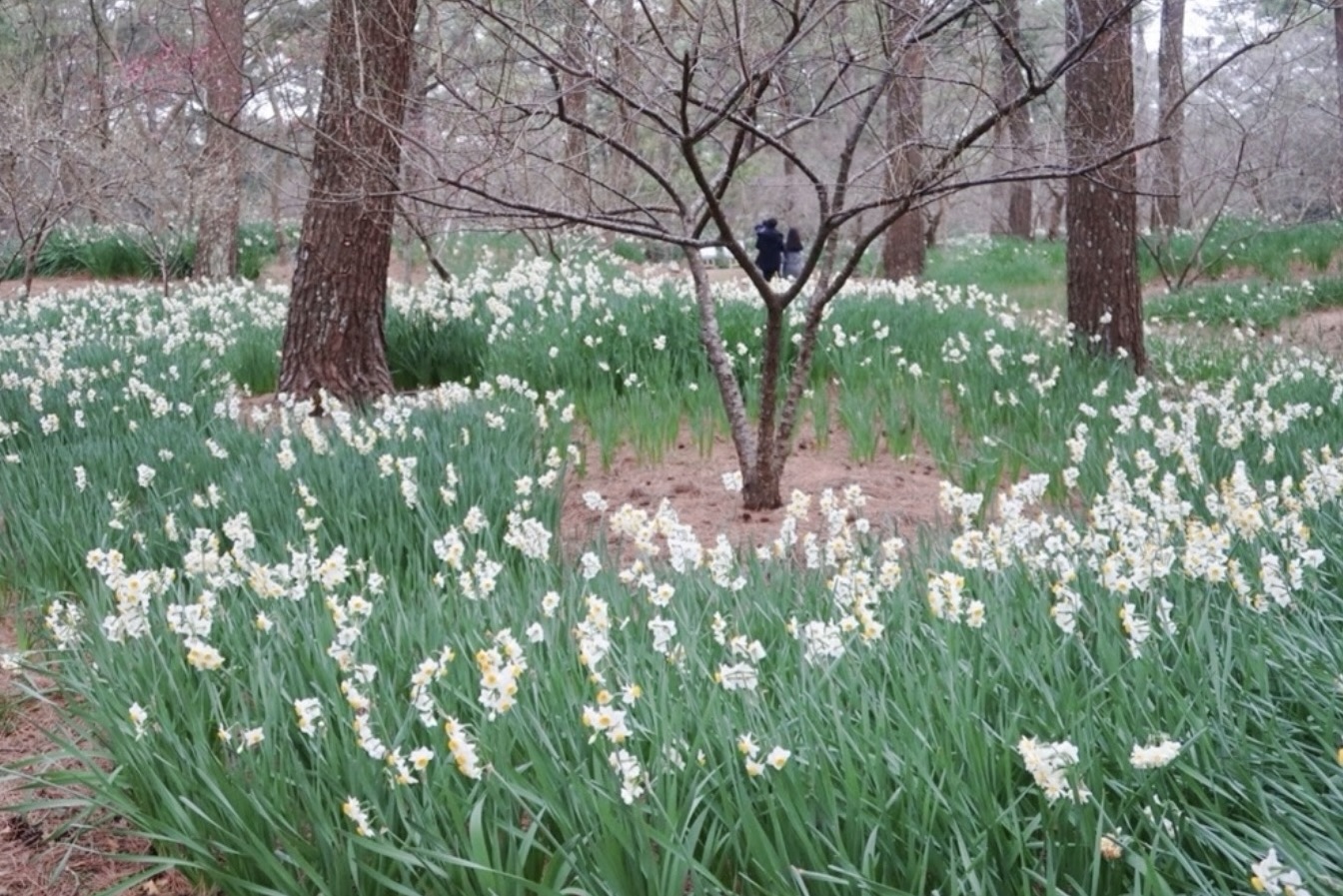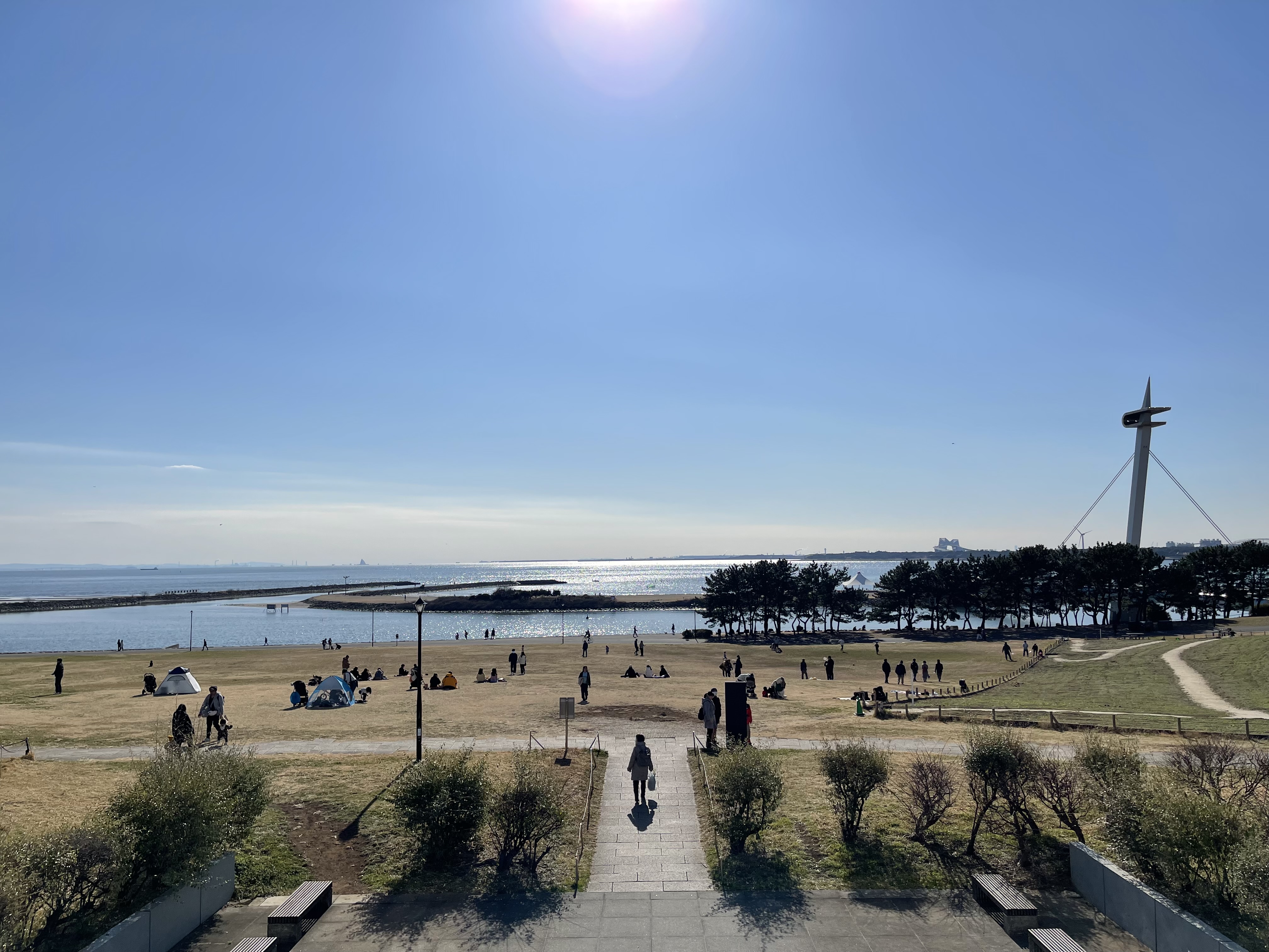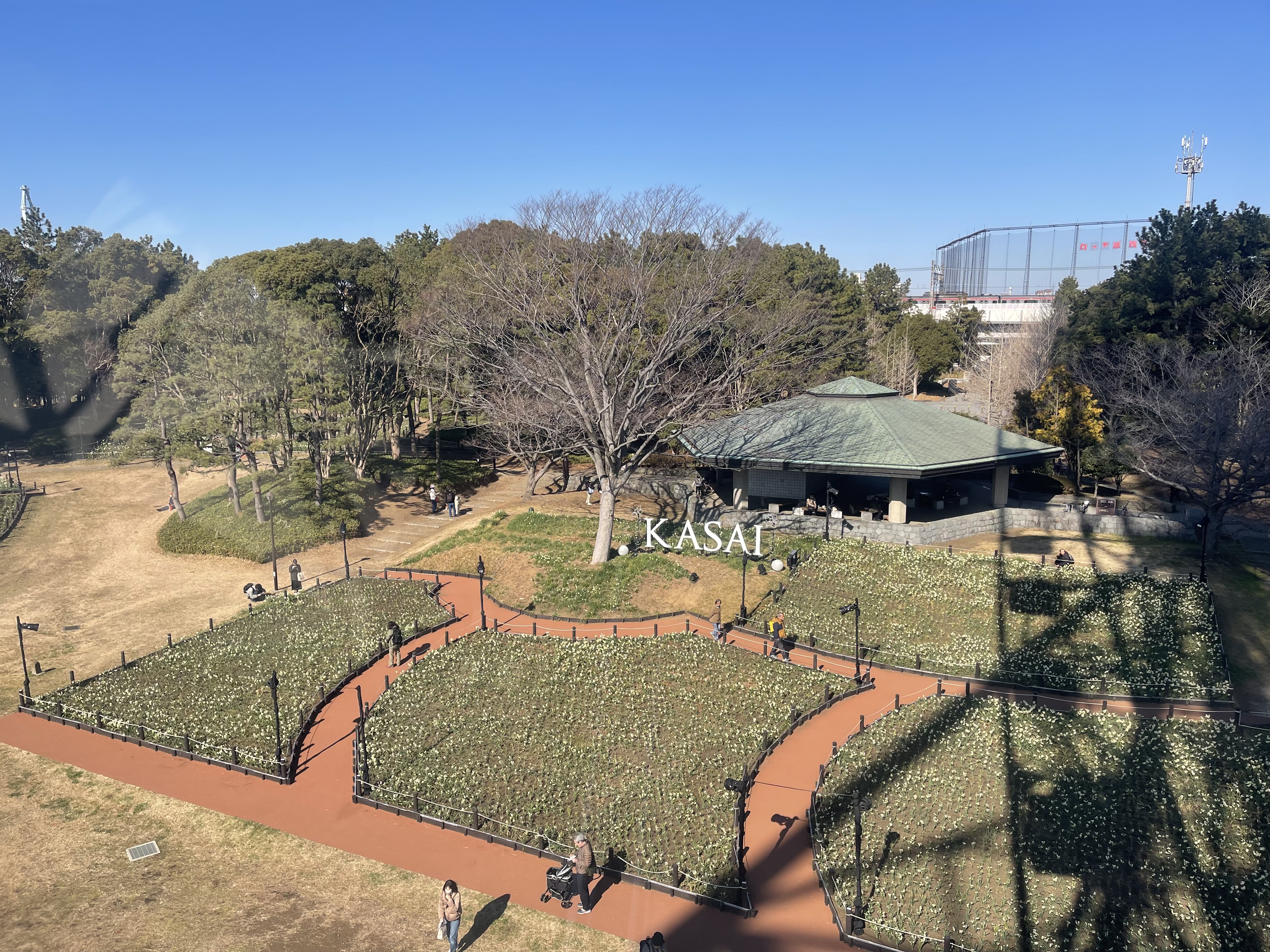 葛西臨海公園⛲️は旧江戸川と荒川に挟まれ、東京湾に面する東京の東端にある。中国、韓国、北朝鮮、全ての首都は海に面していない。この公園から日本の首都東京だけが海に向かっていることを感じる。南西方向に富士山が拝め、海岸から房総半島の木更津に向かう海ほたるの風の塔が望め、更にその先へ大海に通ずる東京湾が広がっている。穏やかな細波が日の光を受け、銀色に輝き、どこまでも続く海の広大さを教えてくれる。そして、海を通して全てを受け止めてきたこの国の形を窺い知ることができる。海を越えてやってきた美と文化を認め、育み、更に高みへと引き上げたのが我々の先祖であり今の我々だ。花とて同様。多くの中国、朝鮮から渡ってきた美と香を認め、植え、育て、愛でてきた。大陸から渡ってきた花々、蝋梅、沈丁花、梅、木蓮、牡丹、薔薇、石楠花、槿、百日紅、蓮、蘭、曼珠沙華、金木犀、菊等。然るに遠くシルクロードを越え、同じく中国から渡ってきた水仙については花を愛で、育んだ歴史が残っていない。過去が消えている。日本水仙と我々は呼んでいるが、学名はNarcissus tazetta L. var. chinensis。中国がoriginalと分かる。どのように渡ってきたのか?遣唐使という説が一番尤もらしいのだが、書物に残っていない。正倉院に証拠もないし、万葉集にも愛でる姿はない。球根が椰子の実の如く海流に乗って、渡ってきた説まである。全くの謎。さて、公園で海に見惚れていたが、水仙まつりはどこで開催されているのか?案内がない。都立公園としては2番目に大きい77.8haもある。旧江戸川を越えれば千葉県浦安舞浜のディズニーワールド。海辺のカフェの女性に聞く。彼女曰く「分からないが、観覧車🎡の下ではないか?」催し物はそこで開かれることが多いとのこと。まずは向かってみる。