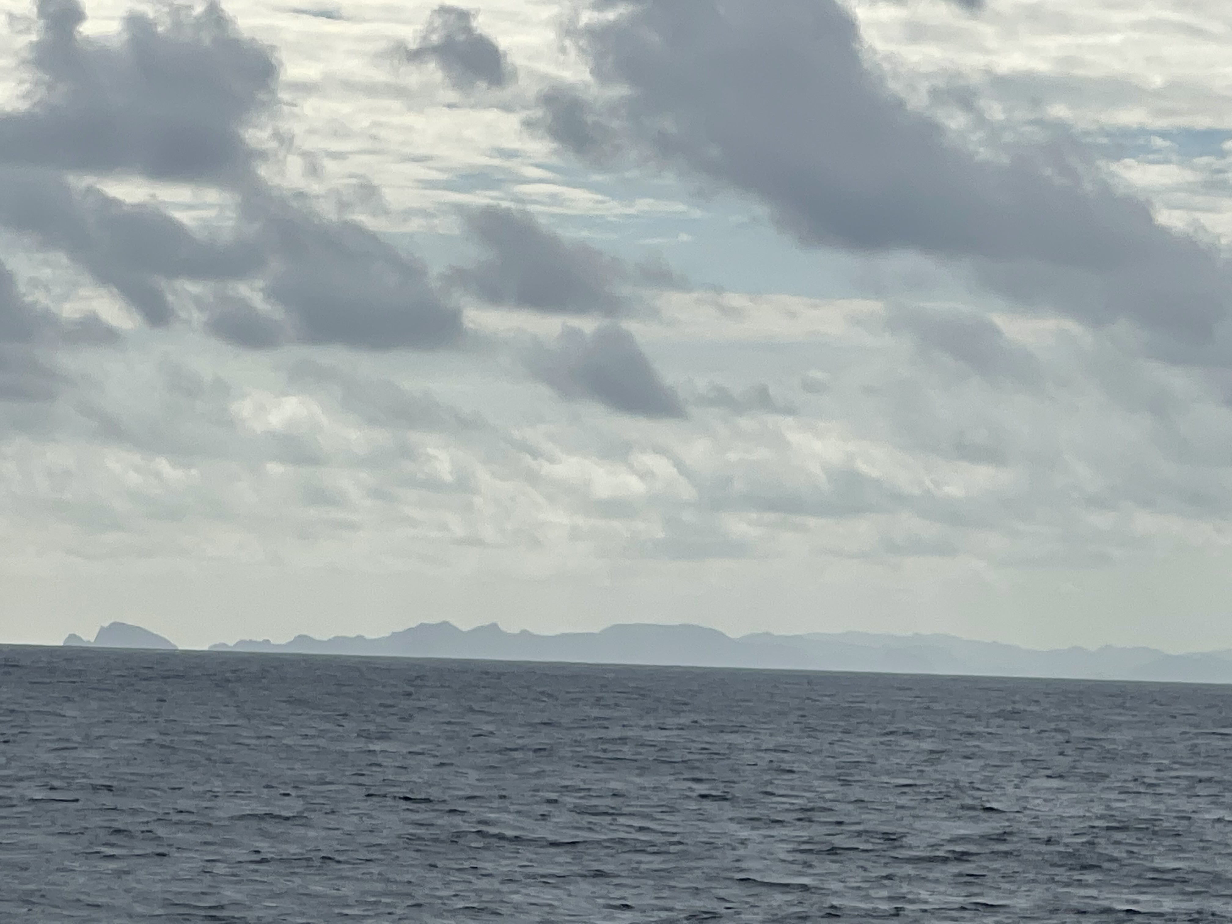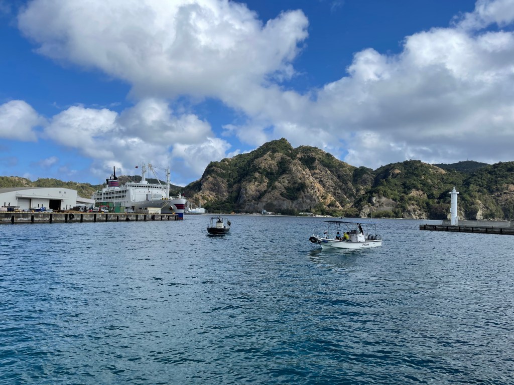 この時期海の上は南の島へ向かっているとしても寒い、フェリーは風を切って洋上を走るので、デッキの上では潮風が体温を奪い風邪をひいた。天気がいいので、船内売店のショップドルフィンで買った、つまみに島レモン酎ハイを飲んで、最上デッキでうたた寝して喉を痛めた。迂闊だった。風邪薬が足らないので往生した。デッキでは厚着にマリンジャケットは必須。波が風に舞う。午後3時過ぎには寒さに耐えられなくなり、船内に入る。そして朝明るくなるまで船内の時間となる。18時間以上が船内。どう時間を潰すかが勝負なのだが、何せコロナ禍でおいそれと他人に大きな声で話し掛けられないのが辛い。情報交換が旅の途上では命なのだが、これができない。本を数冊持ってくるべきだったと反省している。船旅中、ほぼインターネットは繋がらない。携帯の充電箇所も限られているので、居場所を探すのに往生する。最上階の展望ラウンジがあるが、いつも一杯で、座るのが大変。只管座る場所探しだ。船内は清掃がゆきとどいており、トイレもシャワー室も寝室も快適だ。ごみひとつ落ちていなく、臭いところもない。空調、温調とも快適でトレーナー上下とサンダルで過ごせる。但し、船内はいつも波のため、不規則に揺れており、歩き回るのがしんどい。4階から7階まで上り下りだけでも実際大変。一番助かったのは寝台で隣り合った方と知り合いになり、情報交換ができ、上陸後、ホエールウォッチングのツアーで映像を頂けたことだった。