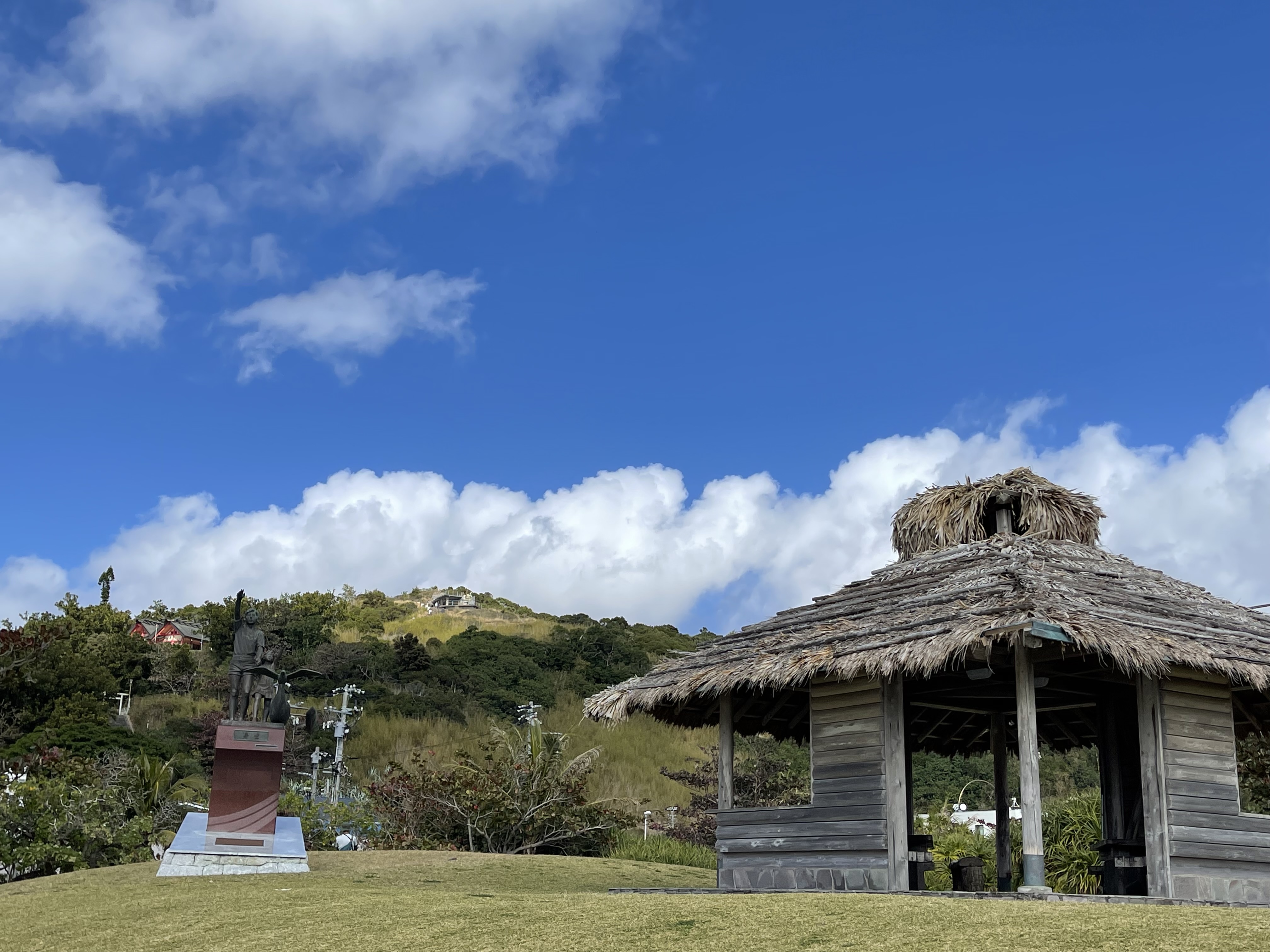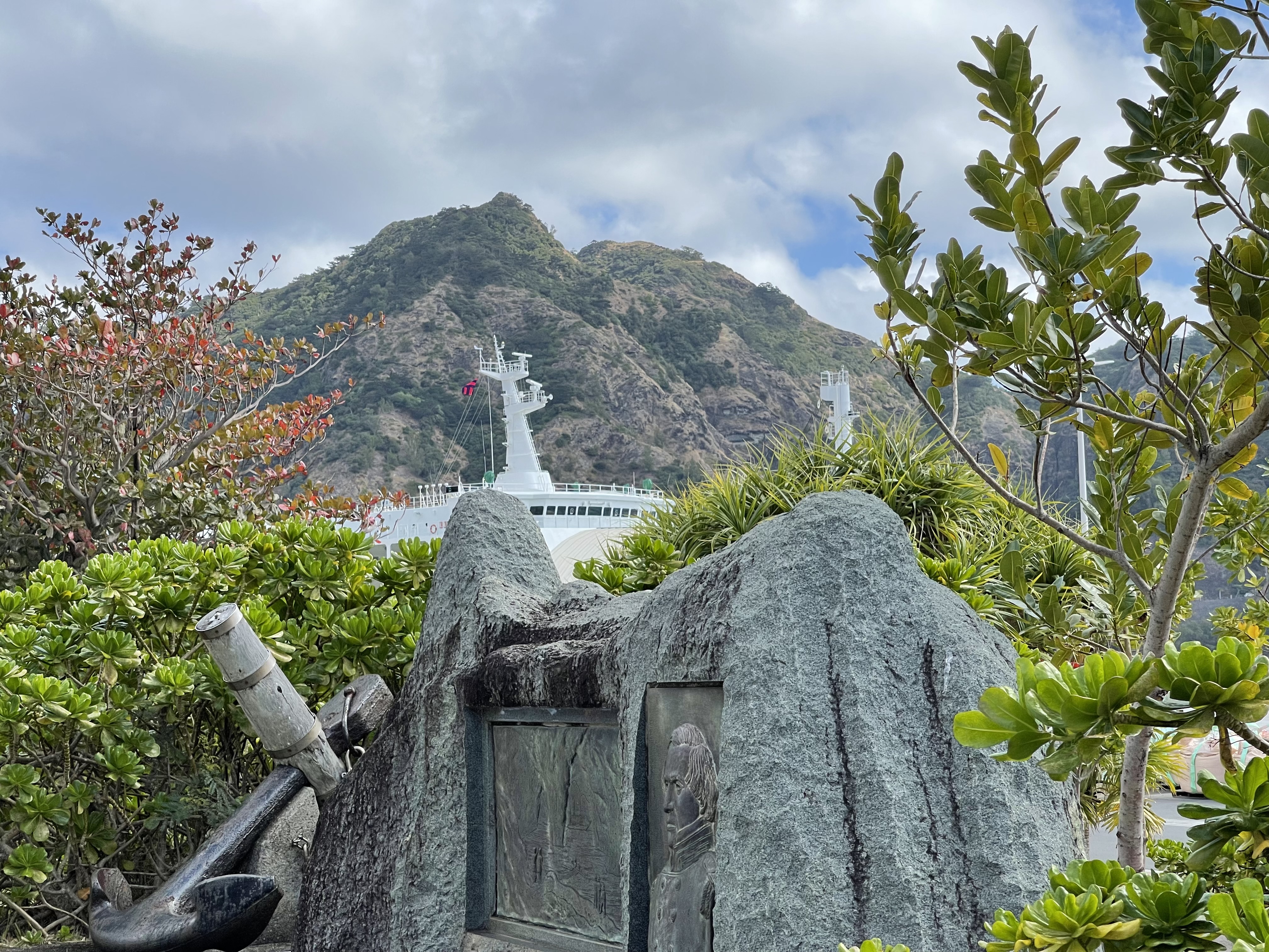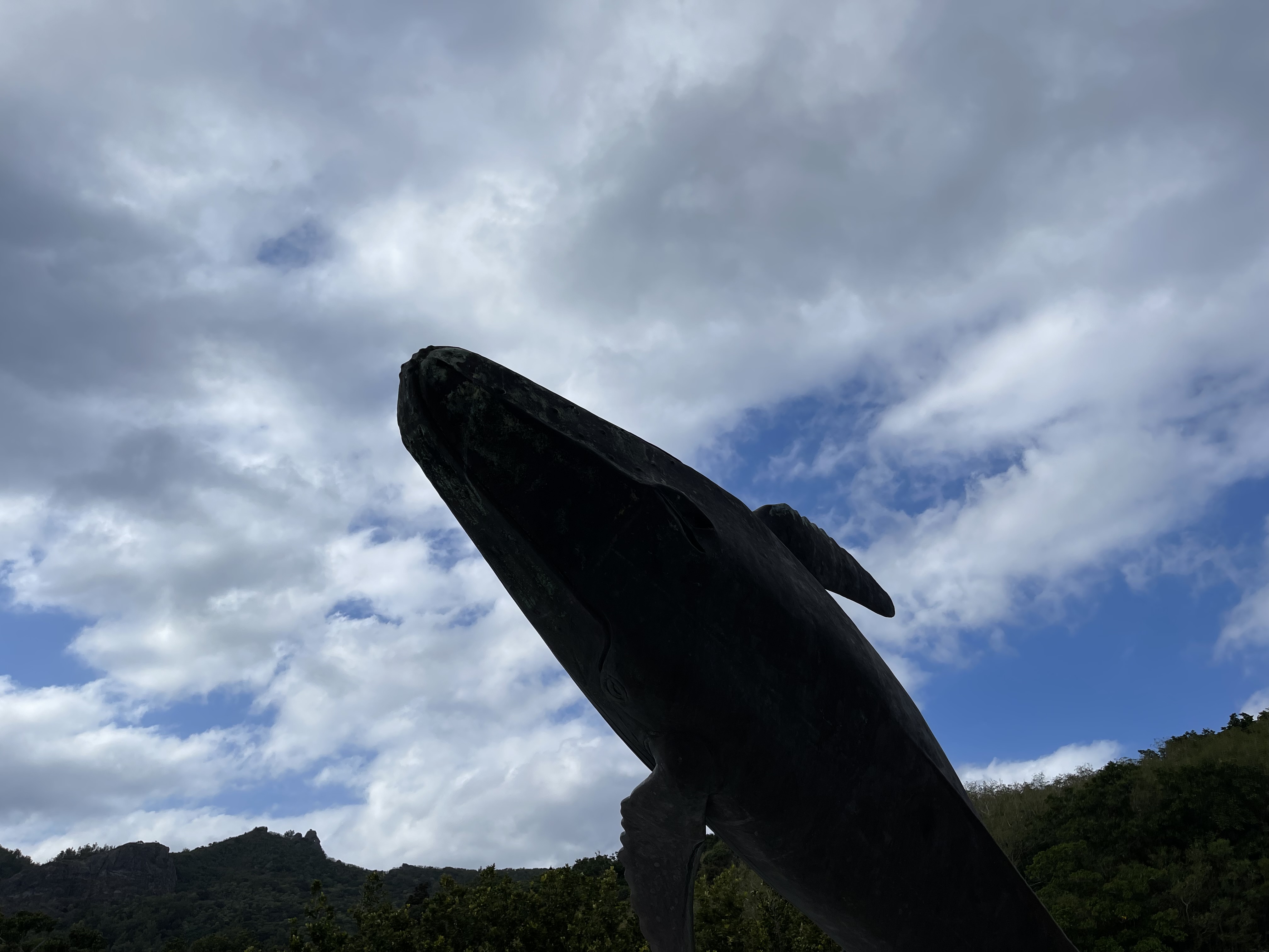 最終日2023年2月9日(木)9am〜14:30pm:出発は15時。朝9時には港に送ってもらい、のんびり港の周りを歩く。天気が良かった。内地であれば春のような陽気。ただ日差しが強いのが南国の証か?港から外れた場所にある小笠原海洋センターに行き、アオウミガメを見た。頭頂の幾何学模様がなんとも美しい。鯨と同様、陸から海へ適応した動物。卵は陸に上がって生むところが故郷を捨てきれない証拠。鯨と違い、手足が残っている。これは残したと言うのが正解だろう。体を防御する重い甲羅を水中で保持して泳ぐには手足はバランスを取るためには必要。長い手足はこのためにある。ただ泳ぐスピードを度外視しなければならない。簡単に捕まるので人間は食材にしている。メキシコのカリブ海に面したカンクンに行った時は海亀牧場があって、食糧扱いにしていた。あの時食べようなんて思うことはなかった。そういえば中国の武漢では水亀の姿煮を食べていた。日本では昔からスッポン料理をたべている。亀は昔より人間の食材として最適だったのだろうか、なんてウミガメを見ながら思った。最終日になって初めて小笠原ビジターセンターに行くことができた。小笠原の歴史を知るためには必ず訪れなければならない。小笠原諸島の歴史の面白いところは、1543年にスペイン船が最初に発見し、英国、ロシア、オランダの船が次々に訪れ、1593年になって日本として小笠原貞頼が無人島として発見しながら、手つかずで、実際は捕鯨基地として米国人が移り住み、1830年以降開拓され、米国領となるところ、米国は力づくで領土とせず、一方住人も日本領を選んでいる。平和的だ。太平洋戦争後米国領となりながら平和裡に1968年に日本に返還されている。しかし、東京から更に遠い、米国領のサイパン、グアムには飛行機が飛び、観光のメッカになっている。日本領を選んだ小笠原との差は歴然だ。正に光と影のように感じる。夏は盆踊りで賑わうと言う大村海岸を歩いて商店街に戻る。今も盆踊りが賑わうところに失われた日本の文化を島でこそ味わえる一抹の侘しさを感じる。私はオープンカフェが好きで、商店街の公園に面したパパスアイランドリゾートhaleのテラス席で地ビール「ボニンクラフトビール島レモン」を飲みながら海鮮丼ランチを頂いた。1,860円也。写真は撮っていないが、土産物屋は3軒ほどで薬屋や雑貨屋を兼ねている。地元産の島のり、レモンカード(レモンバター)、ジャムのレモン、パッションフルーツ、グアバ、単価600〜700円ほど。かさばらず、腐ったり、割れる心配もないので重宝だと思う。土産物屋ばかりの沖縄を知る人間には驚かされる質素さと値段の高さだ。小笠原の物価は正に東京並みだ。14時半には港に着かなければならないのでゆっくりはできなかった。港には鯨のモニュメントがあり、鯨の基地であり、日本最初のホエールウォッチングを始めた誇りを表している。港は去る旅人、見送る島の人々が別れの挨拶を交わしていた。